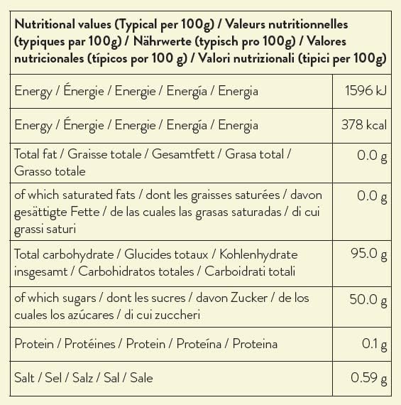 Sugar, Maltodextrin, Natural flavouring, Salt, Thickener: Guar gum